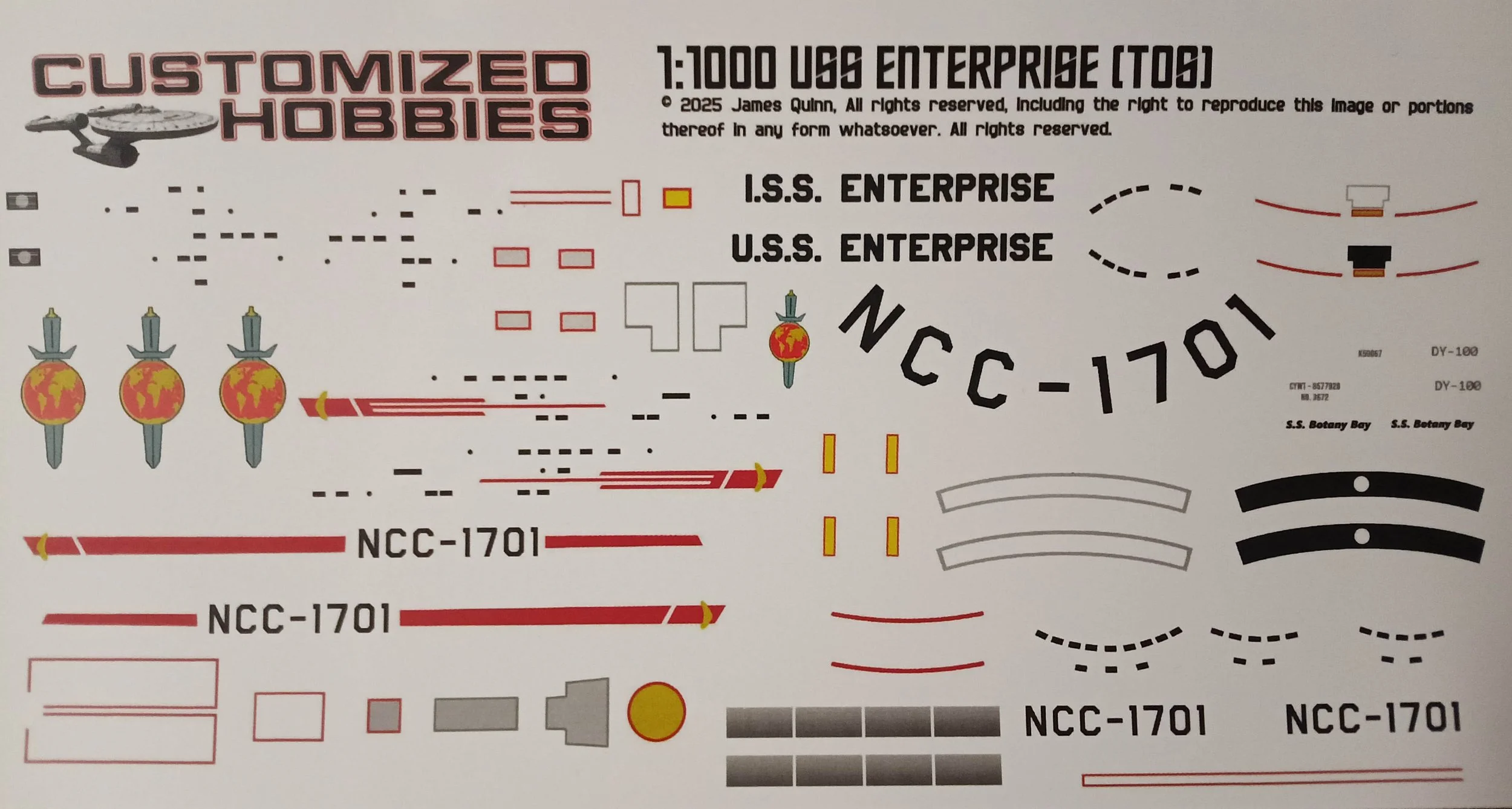 I was gifted a 1:350 USS Enterprise model by my best friend just 3 months before he passed away. We must’ve watched thousands of hours of TOS through DS9 together. When I finally decided to build the model, I decided to make it the USS BRAD PICARD NCC-1208 in his honor. So I customized the registry and name decals in his name, and they turned out so well, I figured I might be able to do this for others. The rest is history.